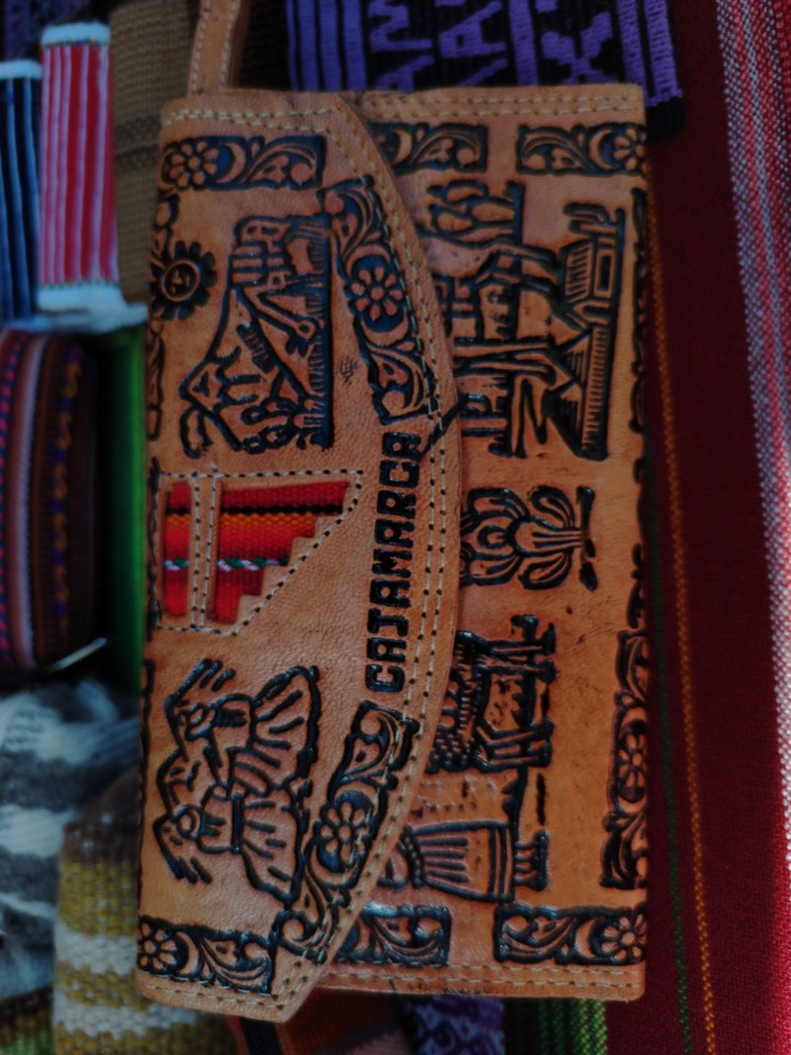 Billetera larga para dama en cuero labrado con múltiples compartimentos.