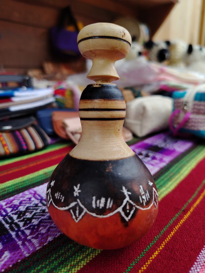 Calabaza ornamental tallada a mano (mate burilado) con escenas costumbristas.